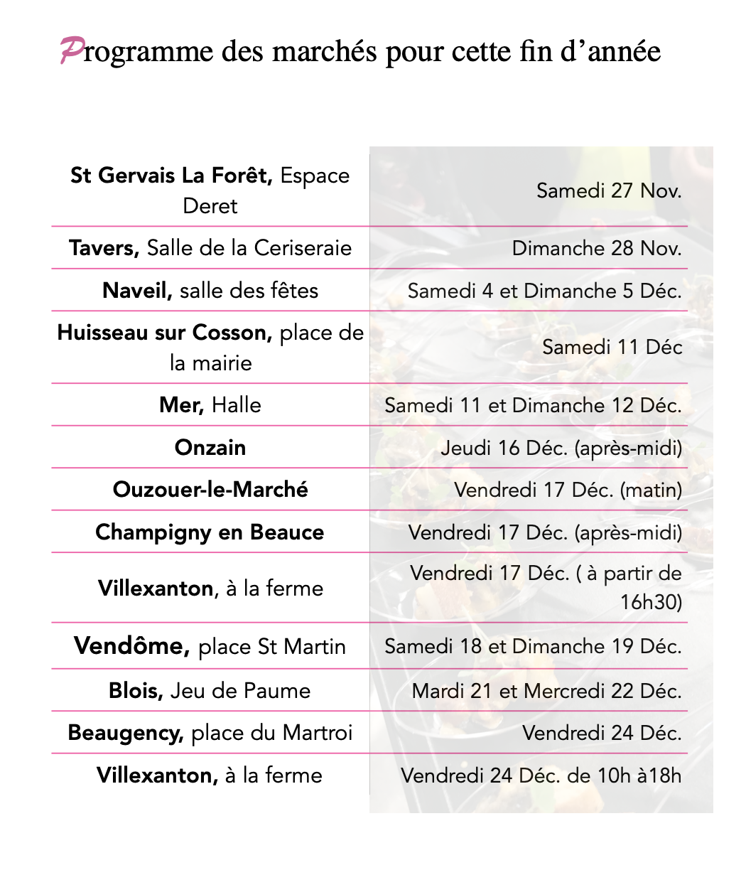 Noël approche à grands pas ! Et quoi de mieux que nos escargots sur votre table ? Voici le programme des marchés à venir.